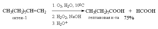 2)с разрывом двойной связи; так идут озонолиз и исчерпывающее окисление алкенов,приводящее к образованию различного рода карбонильных соединений и карбоновых кислот.
