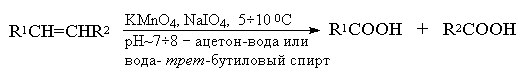 Один из современных препаративных методов окислительной деструкции алкенов был предложен в 1955 г Р. Лемье. В основе этого метода лежит гидроксилирование алкенов с помощью перманганата калия с последующим расщеплением вицинального гликоля периодатом натрия NaIO4