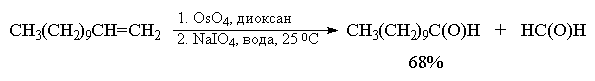 Озонолиз алкенов - это сложный, трудоемкий и взрывоопасный процесс, требующий применения специальной аппаратуры. По этой причине были разработаны другие методы окислительного расщепления алкенов до карбонильных соединений и карбоновых кислот, которые с успехом заменяют реакцию озонолиза в синтетической практике.
