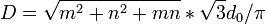 где d 0 = 0,142 нм — расстояние между соседними атомами углерода в графитовой плоскости. Связь между индексами хиральности (m, n) и углом α даётся соотношением: