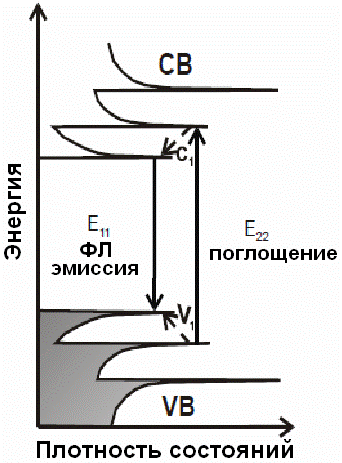 Полупроводниковые модификации углеродных нанотрубок (разность индексов хиральности не кратна трём) являются прямозонными полупроводниками. Это означает, что в них может происходить непосредственная рекомбинация электрон-дырочных пар, приводящая к испусканию фотона. Прямозонность автоматически включает углеродные нанотрубки в число материалов оптоэлектроники