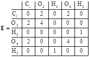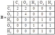 матрицы В, Е и R являются квадратными матрицами, недиагональные элементы которых bij равны числу связей атома i и атома j, а диагональные элементы bij (i = j) равны числу валентных электронов на атоме i в соответствующем соединении. R = E – B .