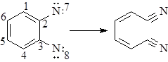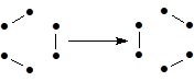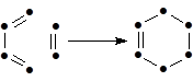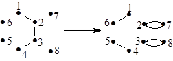 Под топологией перераспределения связей понимается структура графа, который получается при наложении графов, изображающих рвущиеся и образующиеся связи. Любую химическую реакцию можно представить графически, если удалить группы и атомы, не участвующие в изменении связей. Так, реакцию Дильса-Альдера можно представить графическим уравнением (35), которое описывает перераспределение связей
