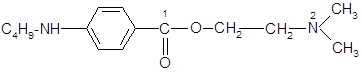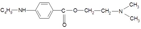 Дикаин относится к классу сложных эфиров п -аминобензойной кислоты (β-диметиламиноэтиловый эфир п -бутиламинобензойной кислоты гидрохлорид) [2]. Расстояние C-N в 2-аминоэтанольной группе определяет двухточечный контакт молекулы дикаина с рецептором через диполь-дипольное и ионное взаимодействие.