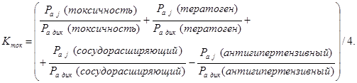 -порог активности каждого j-вида фармакологического действия, влияющего на токсичность.