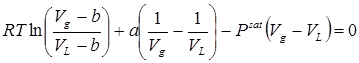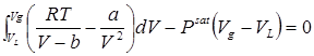 Теперь задача сводится к отысканию значения P sat , при котором выражение 6.3 обратится в тождество. При его нахождении нам потребуется неоднократно определять значения объемов жидкости и пара для заданного P, т.е. находить решения (корни) кубического уравнения.