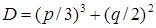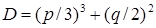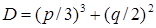Если D > 0, то уравнение имеет одно действительное решение; если D < 0, то - три действительных решения; и если D = 0, то уравнение имеет либо два действительных решения, одно из которых двукратное, либо одно действительное трехкратное решение (последнее в случае p = q = 0).