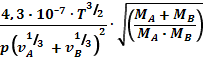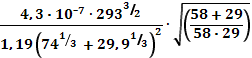 Где Dy – коэффициент диффузии ацетона в газовой фазе, м/с2;Т – температура, К; р –давление, кгс/см2; МА и МВ – молярные массы газов А и В;vA,vB – мольные объёмы газов А и В, для ацетона vA = 74 см3/моль, для воздуха vB = 29,9 см3/моль.