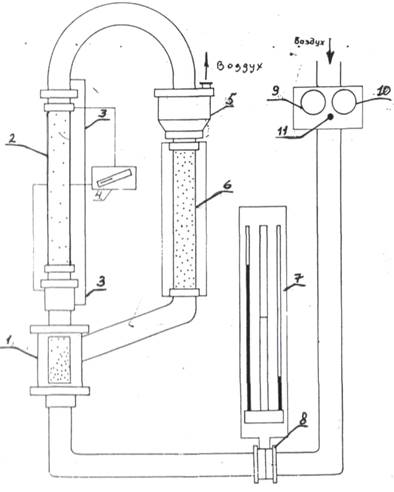 1 – центральная ректификационная колонка; 2 – конденсатор, 3 – краник для отбора дистиллята, 4 – мерная колба, 5 – трехгорлая колба, 6 – штуцер, 7 – нагреватель, 8 – ЛАТР, 9 – капельник, 10 – капельник.