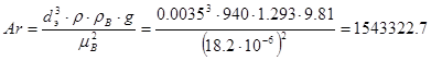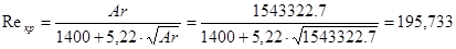 2. Находим критерий Рейнольдса для режима витания частиц: