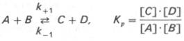 Общие принципы кинетики химических реакций применимы и к ферментативным реакциям. Известно, что любая химическая реакция характеризуется константой термодинамического равновесия. Она выражает состояние химического равновесия, достигаемого системой, и обозначается Кр . Так, для реакции: