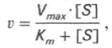 т.е. фермент Е вступает во взаимодействие с субстратом S с образованием промежуточного комплекса ES, который далее распадается на свободный фермент и продукт реакции Р. Математическая обработка на основе закона действующих масс дала возможность вывести уравнение, названное в честь авторов уравнением Михаэлиса–Ментен, выражающее количественное соотношение между концентрацией субстрата и скоростью ферментативной реакции: