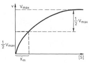 Таким образом, константа Михаэлиса численно равна концентрации субстрата (моль/л), при которой скорость данной ферментативной реакции составляет половину от максимальной.