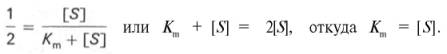 Для определения численного значения Кm обычно находят ту концентрацию субстрата, при которой скорость ферментативной реакции v составляет половину от максимальной Vmax , т.е. если v = 1 /2 Vmaх . Подставляя значение v в уравнение Бриггса–Холдейна, получаем: