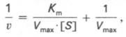 Пользоваться графиком, построенным в прямых координатах зависимости начальной скорости реакции v0 от начальной концентрации субстрата [S0 ], неудобно, поскольку максимальная скорость Vmax является в данном случае асимптотической величиной и определяется недостаточно точно.