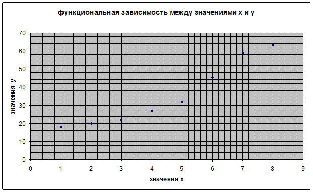 Установить функциональную зависимость между значениями x и y