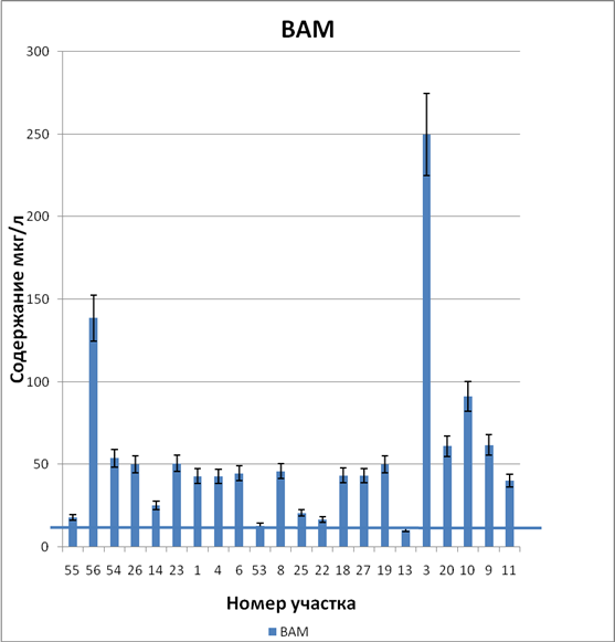 | № участка | Содержание мкг/л | № участка | Содержание мкг/л |