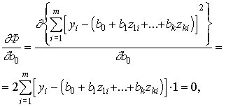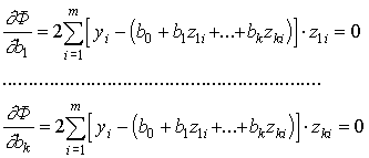 Если функция дифференцируема, то необходимым условием минимума Ф b0, b1,..., bk является выполнение равенств: