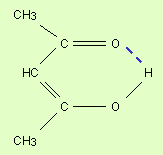 Водородная связь. Ее образование обусловленно тем, что в результате сильного смещения электронной пары к электроотрицательному атому атом водорода, обладающий эффективным положительным зарядом, может взаимодействовать с другим электроотрицательным атомом (F, O, N, реже Cl, Br, S). Энергия такого электростатического взаимодействия составляет 20–100 кДж∙моль–1. Водородные связи могут быть внутри- и межмолекулярными. Внутримолекулярная водородная связь образуется, например, в ацетилацетоне и сопровождается замыканием цикла (рис. 3.3).