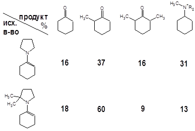 Скорости образования енаминов для различных вторичных аминов в большинстве случаев образуют следующий ряд: