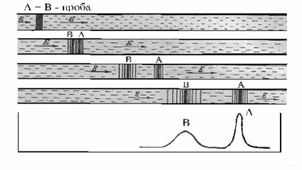 Рисунок 18.3 – Образование зон в процессе хроматографирования смеси