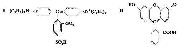 Представители этой группы – кислотный ярко-голубой З (I) и флюоресцин (II):