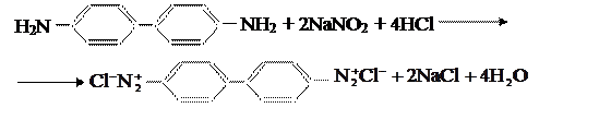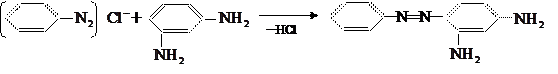 Чтобы легче установить строение полученного азокрасителя, его можно восстановить с помощью гидросульфита натрия до двух простых по строению диаминов: ![]()