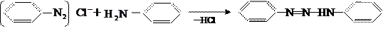 При сочетании диазосоединений с анилином и другими первичными аминами бензольного ряда образуется промежуточное диазоаминосоединение: