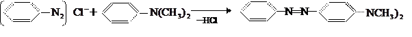 Легко вступает в реакцию сочетания алкилированные амины, например, диметил- и диэтиланилин: