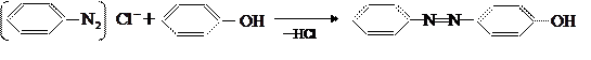 При сочетании диазосоединений с оксисоединениями нужна слабощелочная среда и температура от 0 до 10˚С. С фенолом сочетание идёт в параположение: