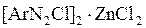 Одна из таких форм – двойная соль диазосоединения с солями тяжёлых металлов, например хлористым цинком. Её получают добавлением хлористого цинка к раствору соли диазония. При последующем добавлении хлористого натрия двойная соль выпадает в осадок, её отфильтровывают и сушат при низкой температуре. Строение соли отвечает формуле