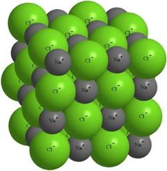 Ионные соединения (например, хлорид натрия NaCl) - твердые и тугоплавкие от того, что между зарядами их ионов ("+" и "–") существуют мощные силы электростатического притяжения .