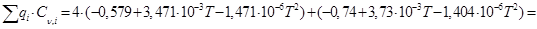 Σqi Cν i = 3(-0,501+3,695·10-3 T-1,471·10-6 ·T2 )+3(-0,836 +3,208 ·10-3 ·T-1,087·10-6 ·T2 )+ +15(-0,139+0,168·10-3 ·T+0,447·10-6 ·T2 ) = (-8,604 +32,85·10-3 ·T- 4,23·10-6 ·T2 );