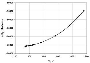 Таким образом, в результате проведенных расчетов термодинамических параметров полимеризации тетрафторэтилена, можно сделать выводы о том, что реакция экзотермическая, термодинамически возможно проводить ее при температурах до ≈340 К.