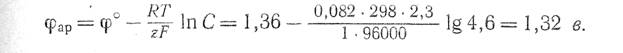 Равновесный потенциал разряда, ионов хлора при концентрации NaCI в растворе 4,6 г-экв/л равен