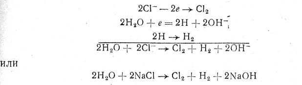т. е. на аноде идет образование хлора, а у катода — водорода и гидроксида натрия.