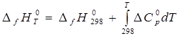 - идеально-газовая энтальпия вещества при рассматриваемой температуре; в случае расчета энтальпий образования органических соединений это