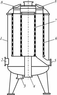 2, 5 – камеры; 3 – газораспределительная решетка; 4 – трубчатка;