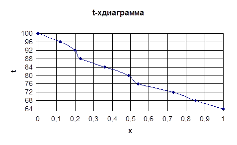 Построим t-x диаграмму из которой найдем tкип.см = 78°C