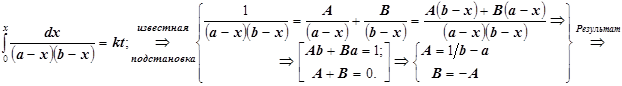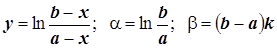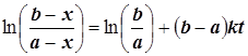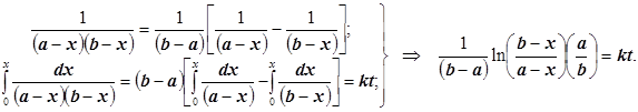 Если кинетика реакции исследуется от начального момента времени t=0, и в исходной смеси отсутствовал конечный продукт: x=0, то искомая функция концентрации продукта от времени выражается в виде: