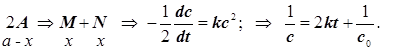 3) Односторонняя реакция 2-го порядка и её стехиметрическое уравнение: