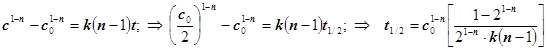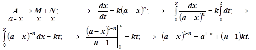 5) Односторонняя реакция произвольного n-го порядка при (с0=a):