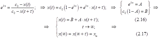 или e-k×e-k t=1- [x(t+)/ c0]. Разделив почленно (2.14) на (2.15), получаем выражения