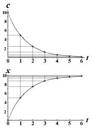t -время; c0 –стартовая (начальная) концентрация... и c(t) –текущая концентрация реагента;