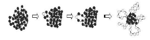 Один из вариантов конформационно-зависимого дизайна сополимеров, который ведёт к статистически достаточно сложным последовательностям рассмотрен в статьях [3,4,5]. Подход заключается в модифицировании поверхности глобулы. Звеньям, находящимся на поверхности присваивается индекс Р (гидрофильные звенья), а находящимся в ядре глобулы – Н (гидрофобные). Конформация полученного сополимера зависит от Н-Н, Н-Р и Р-Р взаимодействий.