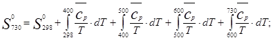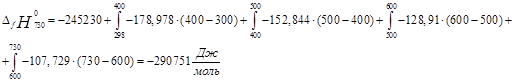 соответственно для 298К, 400К, 500К, 600К, 800К и путем интерполяции найдем