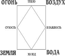 До логич соверш-ва систему четырёх стихий довёл один из величайших мысл-лей античности – Аристотель из Стагиры (384-322 до н.э.). По мнению Аристотеля, четыре известные стихии не материальны, а являются лишь различными проявлениями (состояниями) первоматерии. Первоматерия предстаёт человеку, проявляя одновременно два из двух пар противоположных свойств – холода или тепла и влажности или сухости: