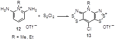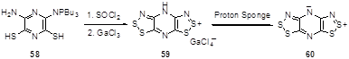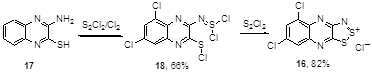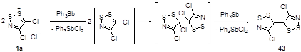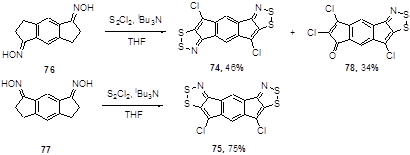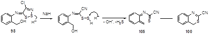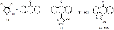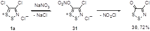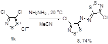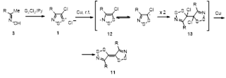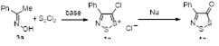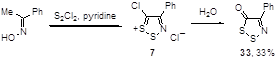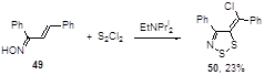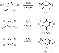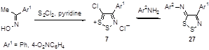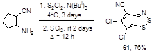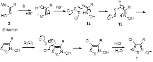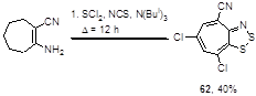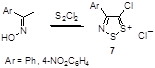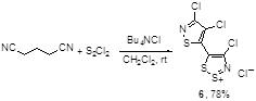 Нитрил глутаровой кислоты реагирует с монохлоридом серы, образуя хлорид изотиазолилдитиазолия 6 (Схема 3); механизм этой интересной перегруппировки не приводится.[9]
