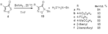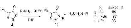 Впервые найдены условия превращения 4-замещенных 5Н-1,2,3-дитиазол-5-онов и -5-тионов в 2,4-дизамещенные 1,2,5-тиадиазол-5-оны и -5-тионы под действием первичных алифатических аминов.