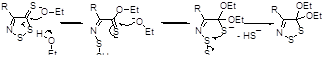 2.2.3 Предполагаемый механизм взаимодействия 4-замещенных 5Н-1,2,3-дитиазолов 4 и 6 с первичными и вторичными аминами